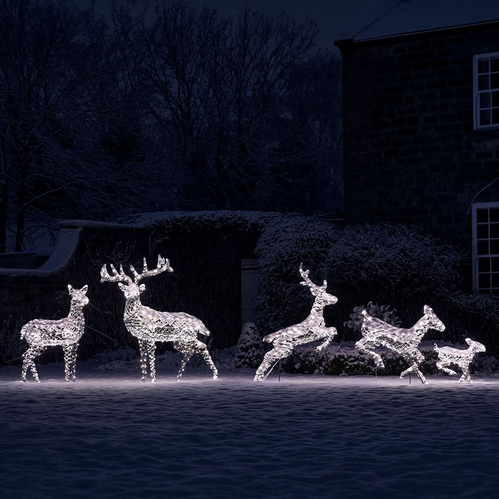 Com o Conjunto Natalino de 5 Renas Iluminadas com LED em Duas Cores, você cria um cenário natalino único e sofisticado. Seja no jardim, sala ou vitrine, ele garante um toque mágico para encantar sua família, convidados e clientes neste Natal.